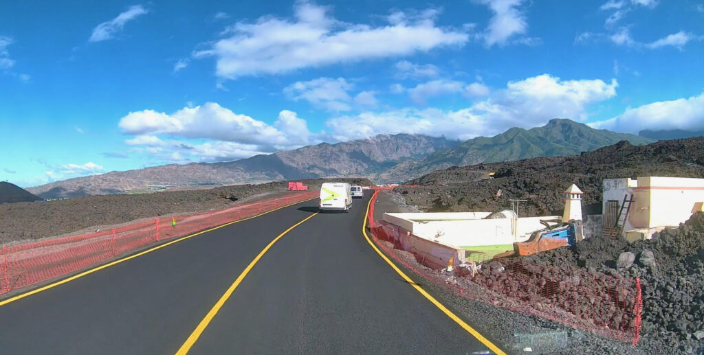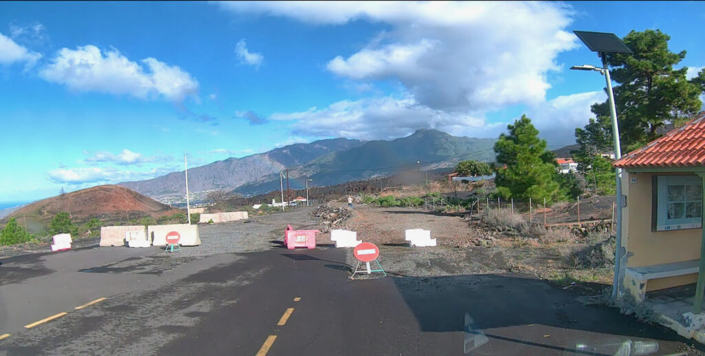 Da es auf den Kanaren kaum Wohnmobilstellplätze wie im westlichen Europa gibt, mussten wir nach Los Llanos, um Grau- und Schwarzwasser zu entsorgen, denn dort gibt es eine der wenigen Vorrichtungen für diese Zwecke. Der Weg nach Los Llanos führte durch das vom Vulkanausbruch 2021 zerstörte Gebiet. Die frühere Hauptstraße existiert nicht mehr, aber es war Ersatz mit einer Straße quer durch den (erkalteten) Lavastrom geschaffen worden.
