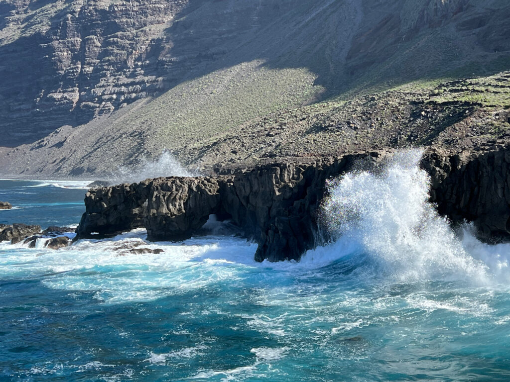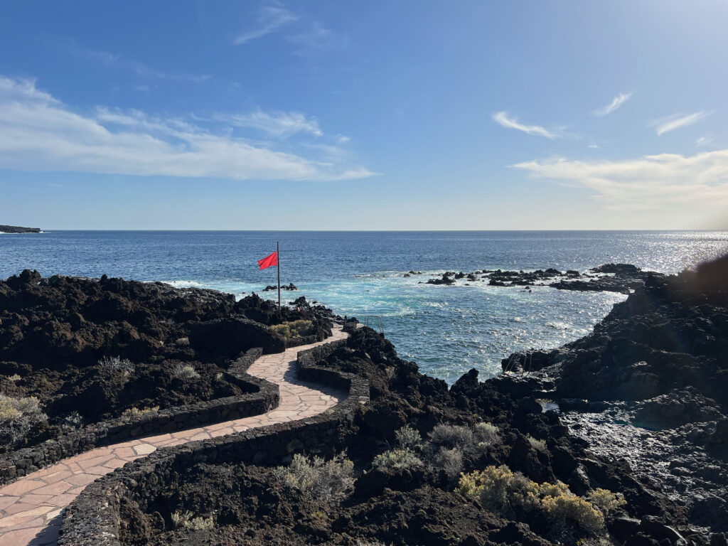 Wir verließen La Restinga und fuhren zum nahegelegenen Strand Tacorón. Allerdings handelt es sich mehr um eine Badestelle in den Felsen. Es wehte die rote Flagge, die das Schwimmen verbietet. Mit einigen anderen Wohnmobilen verbrachten wir auch hier eine ruhige Nacht.