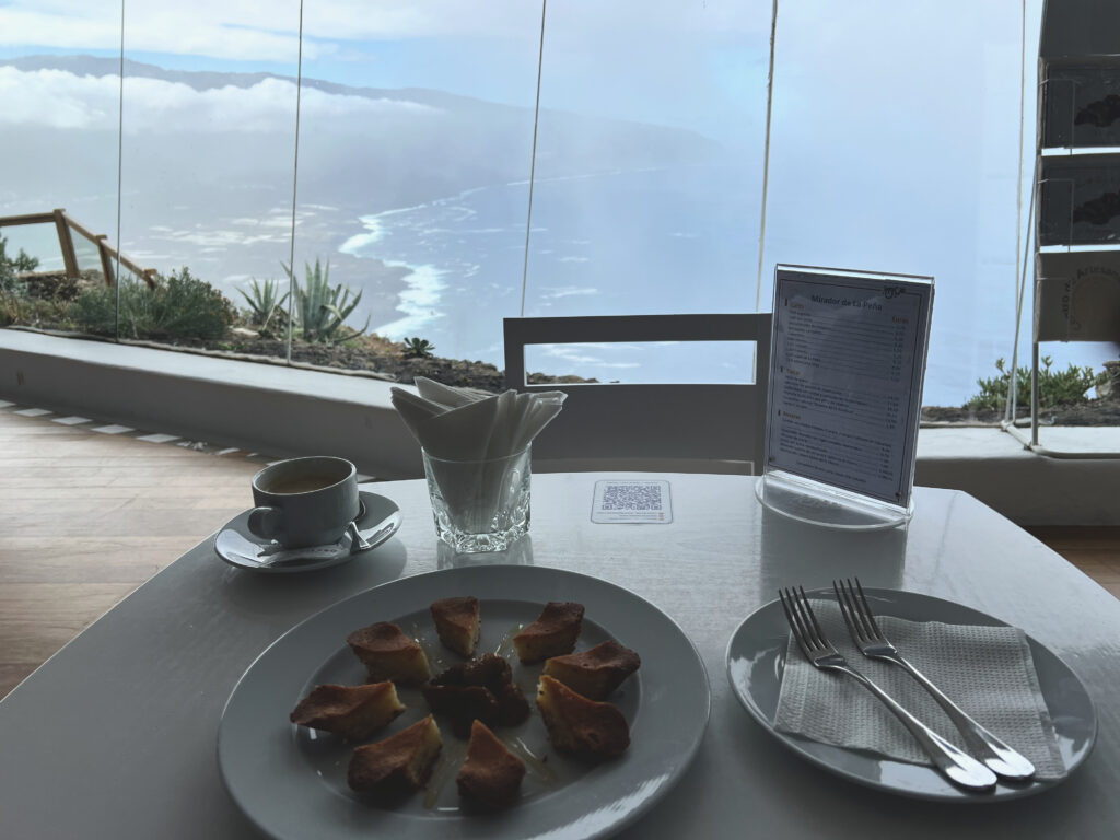 Als letztes Highlight besichtigten wir den Mirador de Peña. Dieser vom Künstler Manrique, der auf Lanzarote lebte, geplante Aussichtspunkt ähnelt dem Mirador auf Lanzarote und bietet einen tollen Blick auf die El Golfo Ebene an der Nordwestküste der Insel. Wir genossen die Aussicht aus dem Restaurant bei einem Café con Leche und Quesadillas. Wir hatten Glück mit dem Wetter, denn beim Verlassen des Aussichtspunktes war bereits alles in Wolken gehüllt.
