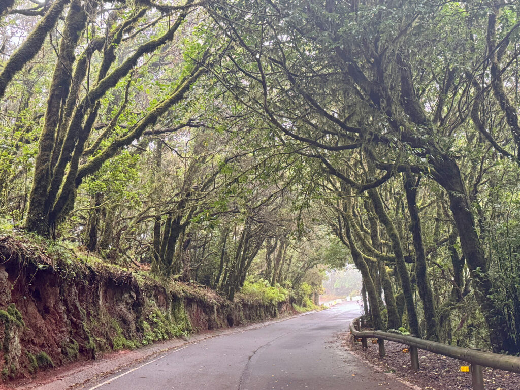 Wir fuhren durch zunehmend dichter werdende Nebelschwaden, auf dem Rückweg sahen wir fast nichts mehr. Unser zweiter Anlauf wurde jedoch mit wunderschönen Aussichten auf Küste, Berge und Lorbeerwald belohnt.